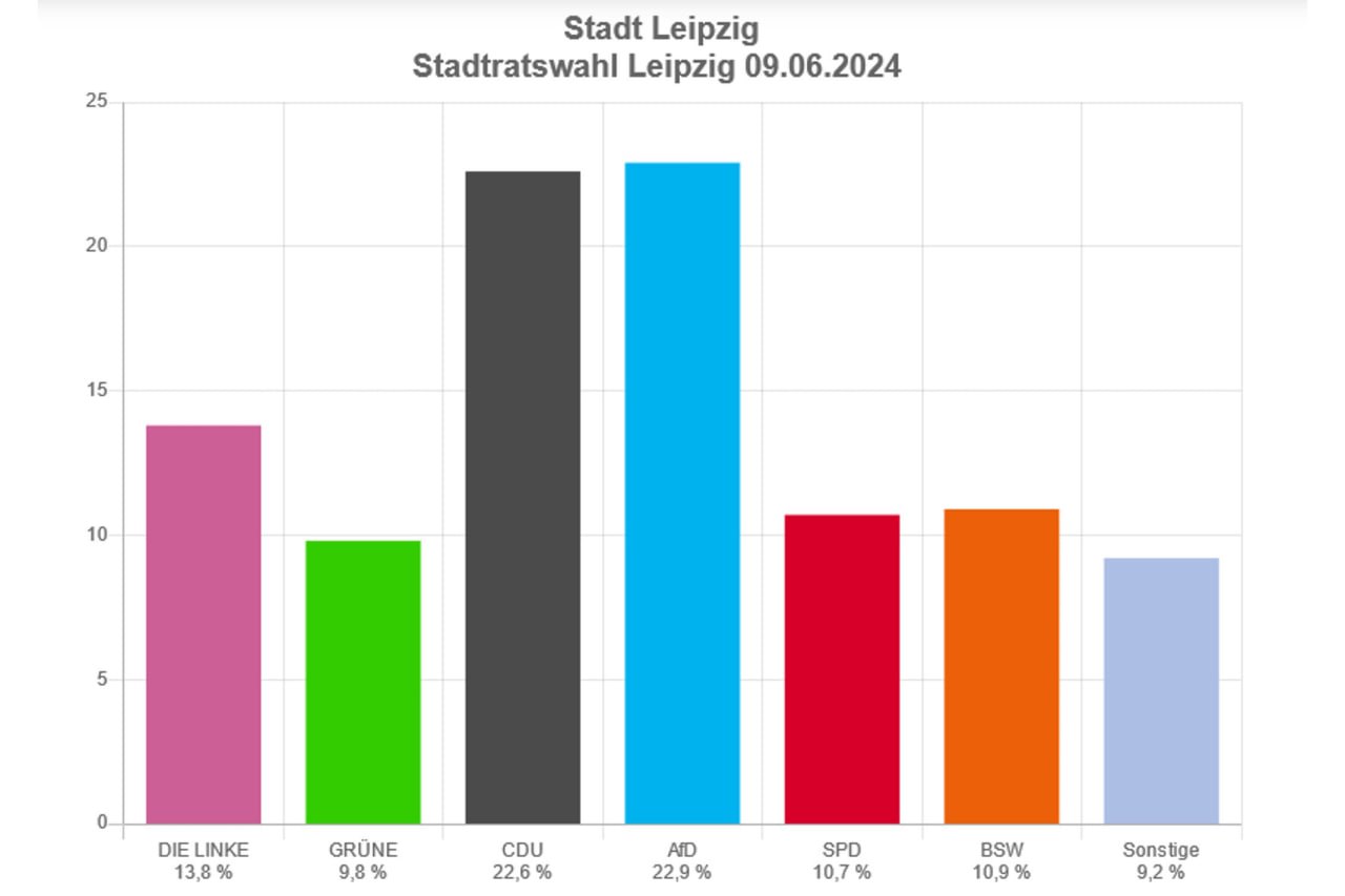 22:50 Uhr: Linke knapp hinter AfD, CDU ganz vorn, BSW sicher im Stadtrat