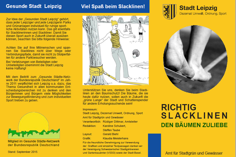 Ja: Wenn man sie überfordert. Die Stadt Leipzig hat alles, was man dazu wissen muss, in einem Faltblatt versammelt. Denn das Problem ist nicht neu. Slacklining ist beliebt. Und die Stadt befürwortet diese sportliche Freizeittätigkeit der Leipziger sogar.