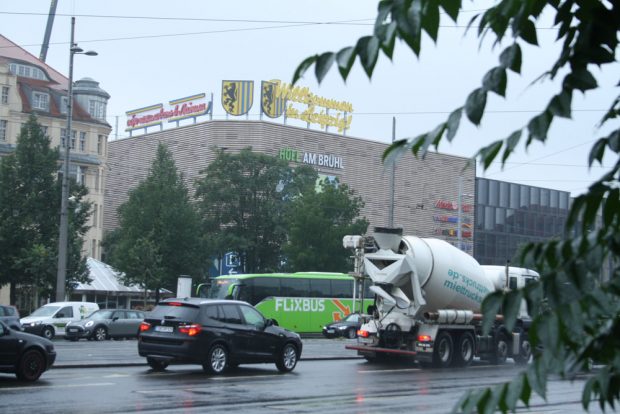 Am heutigen Donnerstag, 12. Juli, gab es mal eine besondere Umleitung in der Leipziger Innenstadt: die Straße am Hallischen Tor war dicht, weil ein großer Kran die Fahrbahn versperrte. Die Kraftfahrer mussten über die Nikolaistraße ausweichen. Ein literarischer Kran war das sozusagen, denn er hob den schwersten aller deutschen Klassiker aufs Dach des Einkaufs-Centers „Höfe am Brühl“. Goethe kehrt nach zehn Jahren ins Stadtbild zurück.
