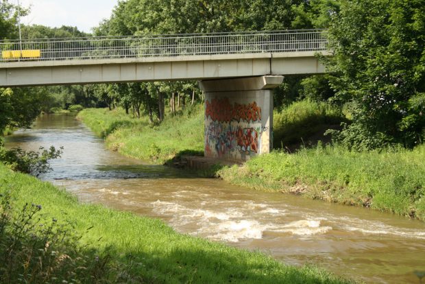 Und die Umformung der Böschung unterhalb des Agra-Wehres behält man bei. Hier soll die Pleiße künftig nicht mehr wie ein schnurgerader Kanal aussehen, wie er im vergangenen Jahrhundert hier gebaut wurde. Vom ursprünglichen Charakter der Pleiße ist ja erst wieder etwas zu sehen, wenn man flussabwärts auf Connewitzer Gebiet kommt.