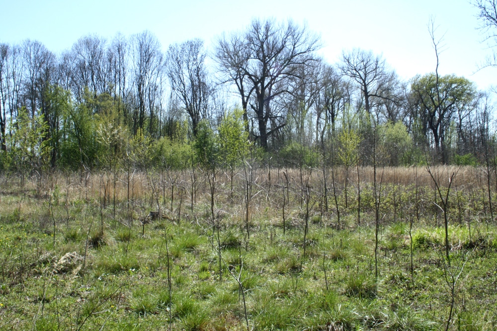 Junge Baumplantage im Gebiet des Eschen-Scheckenfalters. Foto: Ralf Julke