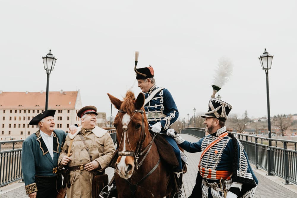 Zum 300-jährigen Jubiläum der Pöppelmannschen Steinbrücke am Samstag, 25. Mai, geben sich August der Starke, Napoleon und die Grimmaer Husaren ein Stelldichein. Die Parade mit bedeutenden historischen Persönlichkeiten ist der Höhepunkt beim bunten Treiben auf der berühmten Brücke in Grimma sowie auf dem Volkshausplatz. Nachgestellt wird zudem das Zusammentreffen amerikanischer und russischer Truppen im Zweiten Weltkrieg.