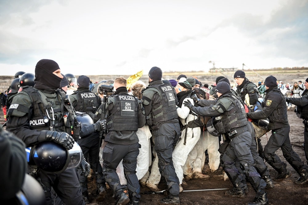 Die erwähnte Landtagsanfrage lässt zumindest die Frage offen, ob die Polizei beim Einsatz im Tagebau tatsächlich verhältnismäßig agiert hat. „Zur Durchsetzung polizeilicher Maßnahmen war zum Teil die Anwendung von unmittelbarem Zwang gegen Personen und Sachen erforderlich“, hatte Innenminister Roland Wöller diese Vorgänge blumig umschrieben, ohne auf die konkret von der Staatsregierung vorgeworfenen „Schläge und Tritte gegen Polizeibeamte“ einzugehen.