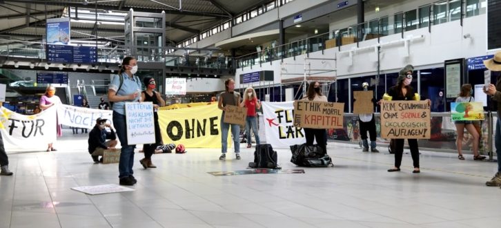 Die fast 50 Teilnehmer einer Demonstration in der Abflughalle des Flughafens Leipzig/Halle haben mit dieser Zahl die Auflagen des Ordnungsamtes des Landkreises Nordsachsen ziemlich ausgeschöpft. In Redebeiträgen forderten einige, mögliche Milliardenkredite für Fluggesellschaften mit Auflagen hin zu einer klimafreundlichen Verkehrswende zu versehen. Aber auch Forderungen nach einer Kerosinabgabe oder anderweitigen Besteuerungen des Flugverkehrs und dessen Einschränkung trugen Redner vor.