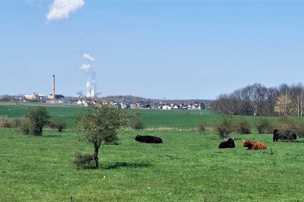 Anschließend ging es für den Umweltminister, den Landrat und die UferLeben-Akteure zu einer weiteren Begehung in das Naturschutzgebiet Bockwitzer See. Am Rande des Natura 2000-Gebietes gibt es wiederum umstrittene Pläne für die Realisierung eines Surfparks mit bis zu 230.000 jährlichen Besuchern. Auf dem geplanten Baufeld, einer idyllischen Wiese, grasen aktuell schottische Hochlandrinder, um die Landschaft offenzuhalten. Hier traf man sich mit Bornas Oberbürgermeisterin Simone Luedtke und dem Leiter der Ökostation Borna-Birkenhain Martin Graichen.