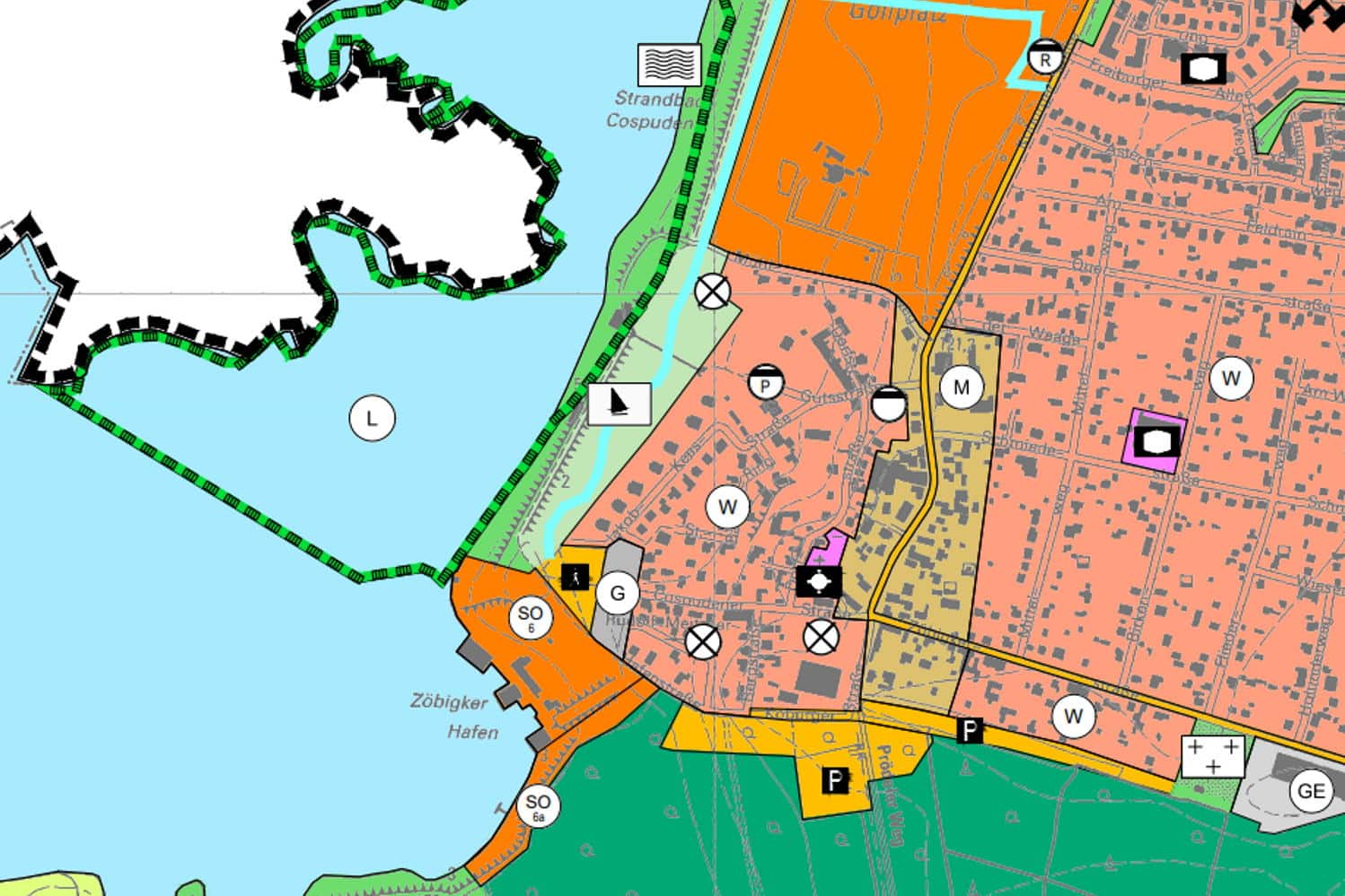 Die deutlich vergrößerte Parkplatzfläche in der Nähe des Zöbigker Hafens. Karte: Entwurf FNP, Stadt Markkleeberg