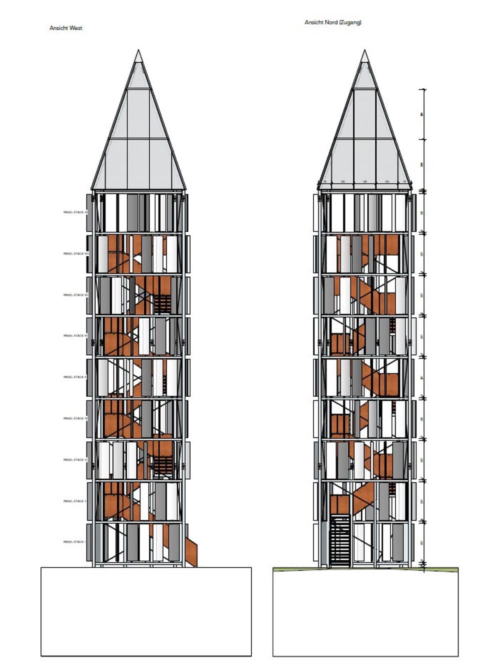 Die Gesamthöhe des Turmes ab der Geländeoberkante wird 29,50 m betragen. Neben der Errichtung des Turmes sollen auch die Zuwegung und das unmittelbare Turmumfeld, unter anderem Fahrradbügel und Parkstellflächen, gestaltet werden.