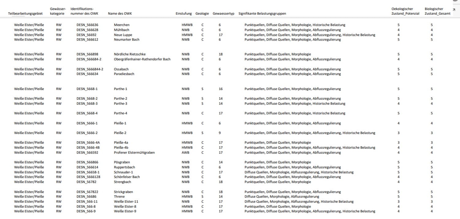 Und dass noch nicht einmal die nötigen Pläne auf dem Tisch liegen, wie die Flüsse im Raum Leipzig wieder in Ordnung gebracht werden sollen, macht die Einzelauswertung deutlich.