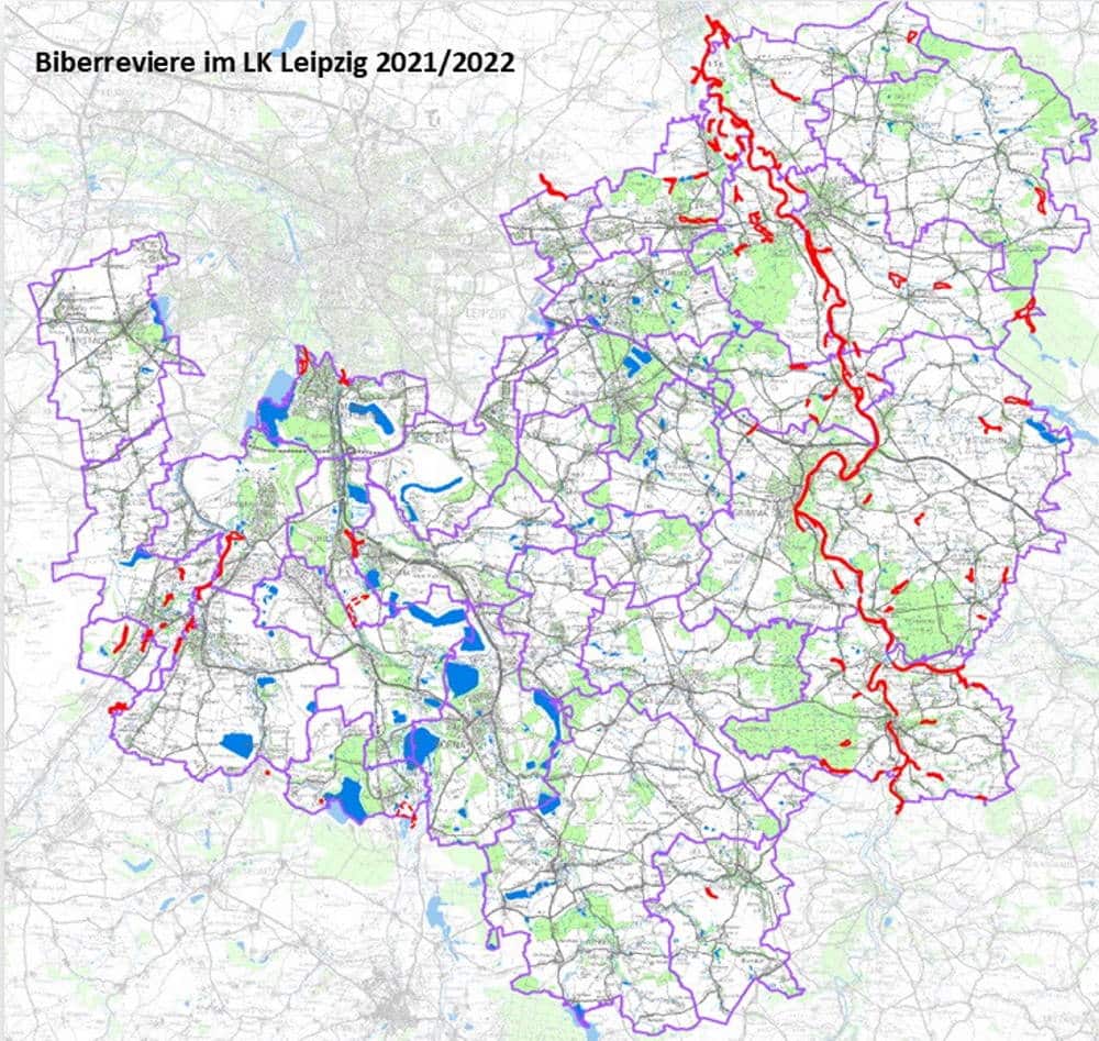 Die aufgefundenen Biberreviere im Landkreis Leipzig. Karte: Landkreis Leipzig