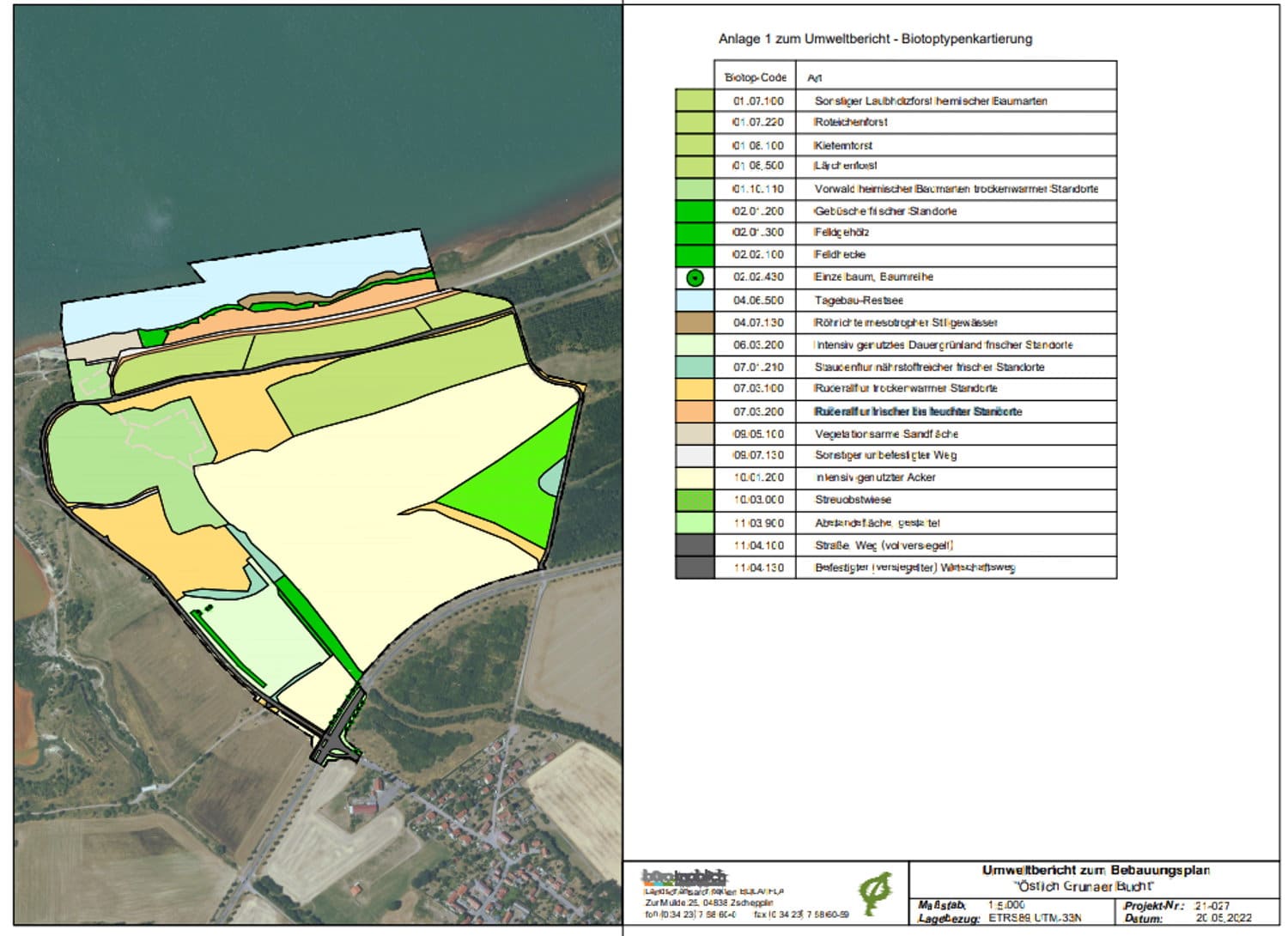 „Bei dem im Norden und Nordwesten anstehenden Boden handelt es sich um Auffüllungen, die im Zuge der Rekultivierung des Tagebaus erfolgt sind und somit nicht mehr um natürlichen Boden. Die hierauf stattfindenden Überbauungen und Versiegelungen sind hier hinsichtlich des Schutzgutes Boden als unbedenklich zu bewerten. Der mit hohen Bodenfunktionen geprägte TB 4 (vgl. Kap. 2.2) wird lediglich durch den östlichen Teil des Campingplatzes in Anspruch genommen.“