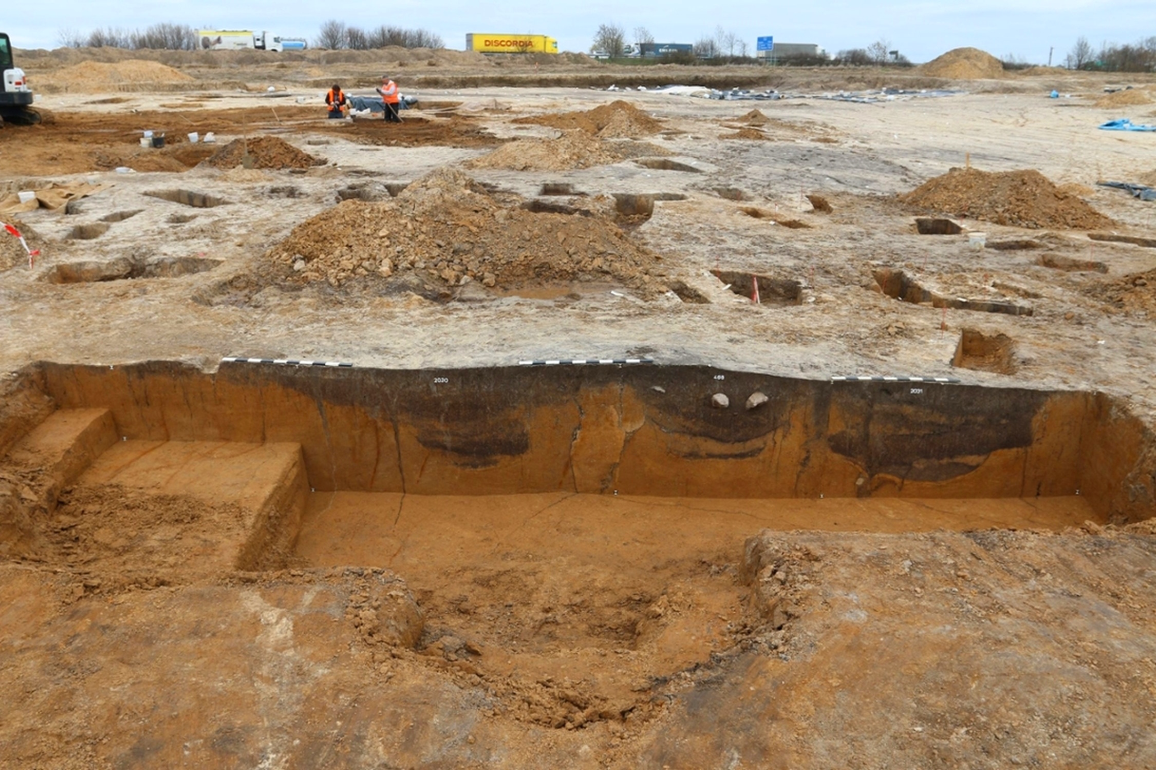 Im Februar 2022 wurden diese Untersuchungen unterbrochen, da der Investor an neuen Planungen arbeitete, die in der ersten Bauphase in drei größeren Bereichen – Hauptgebäude, Straßenanbindung und Regenrückhaltebecken – tiefe Bodeneingriffe vorsahen. Die Ausgrabung dieser Bereiche begann im Oktober 2022 und dauert noch an. Im Herbst und Winter standen Arbeiten am künftigen Standort des Hauptgebäudes im Vordergrund.