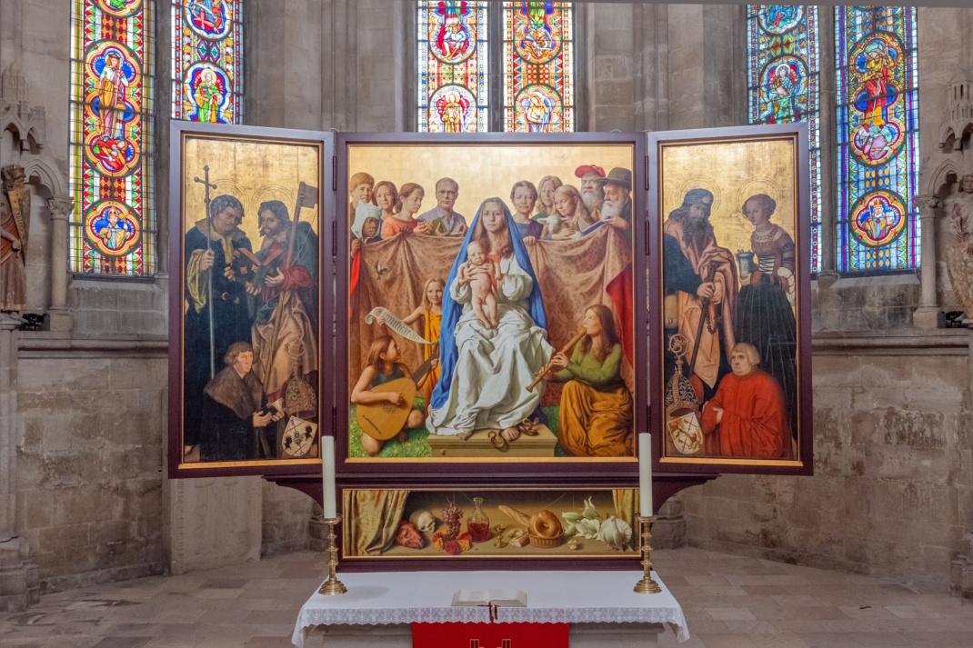 Der Leipziger Maler Michael Triegel hatte den zwischen 1517 und 1519 von Lukas Cranach dem Älteren geschaffenen und später teils zerstörten Altaraufsatz um einen Mittelteil ergänzt. Der Marienaltar war ab Juli 2022 im Naumburger Dom zu sehen. Umstritten ist der Standort des Altaraufsatzes im Westchor des Doms zwischen den Stifterfiguren wie Uta von Naumburg.