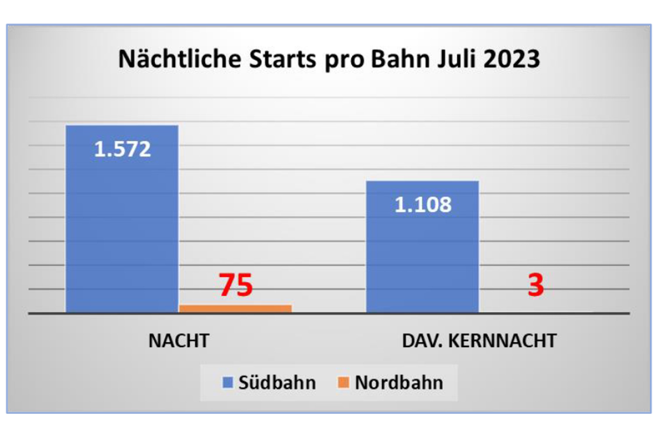 Das klang so, als käme man den Fluglärmbetroffenen endlich mit einer gleichmäßigen Nutzung der Startbahnen entgegen. Aber das stimmt ebenso wenig: Bis heute erfolgen über 90 Prozent der nächtlichen Starts und Landungen auf der stadtnahen Startbahn Süd.