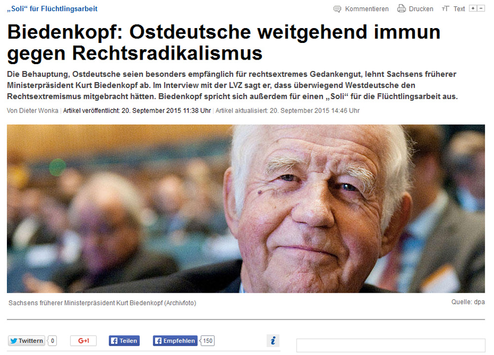 Es gibt also eine Menge Gründe, jetzt zu untersuchen, was da ab 1990 schiefgelaufen ist und warum. Vielleicht hätte es keiner ändern können – vielleicht waren wichtige Entscheidungen trotzdem falsch. Aber gerade diese Umbruchzeit immer wieder nur zu verklären, wird weder die Gemüter beruhigen, noch zu einem neuen respektvollen Umgang miteinander führen. Wobei gerade Kurt Biedenkopf in der letzten Zeit zu Recht kritisiert wurde für seine großväterliche Art, den Rassismus in Teilen Sachsens zu beschönigen.