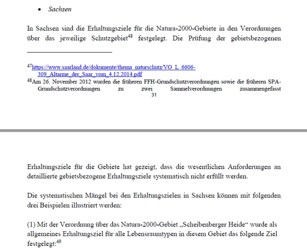 In dem EU-Mahnschreiben steht dann auch richtigerweise für den Freistaat: „Die Prüfung der gebietsbezogenen Erhaltungsziele für die Gebiete hat gezeigt, dass die wesentlichen Anforderungen und detaillierten gebietsbezogenen Erhaltungsziele systematisch nicht erfüllt wurden.“