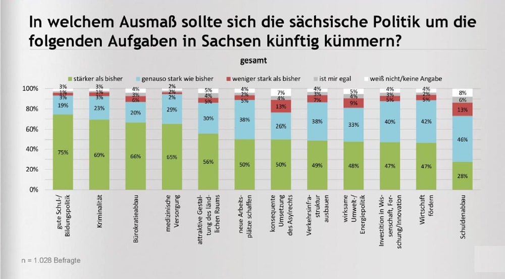 Um welche Themen solte sich die sächsische Politik besonders kümmern? Grafik: CDU-Fraktion Sachsen / INSA