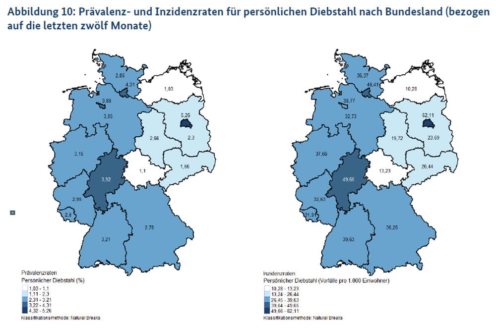 Kurz erklärt: „Die Prävalenzrate erfasst den prozentualen Anteil der in Deutschland lebenden Bevölkerung ab 16 Jahren, der innerhalb eines bestimmten Zeitraums mindestens einmal Opfer einer bestimmten Straftat geworden ist. Bei Haushaltsdelikten, also Straftaten, bei denen der gesamte Haushalt von der Opfererfahrung betroffen ist, bezieht sich die Prävalenzrate auf den prozentualen Anteil aller Privathaushalte in Deutschland.