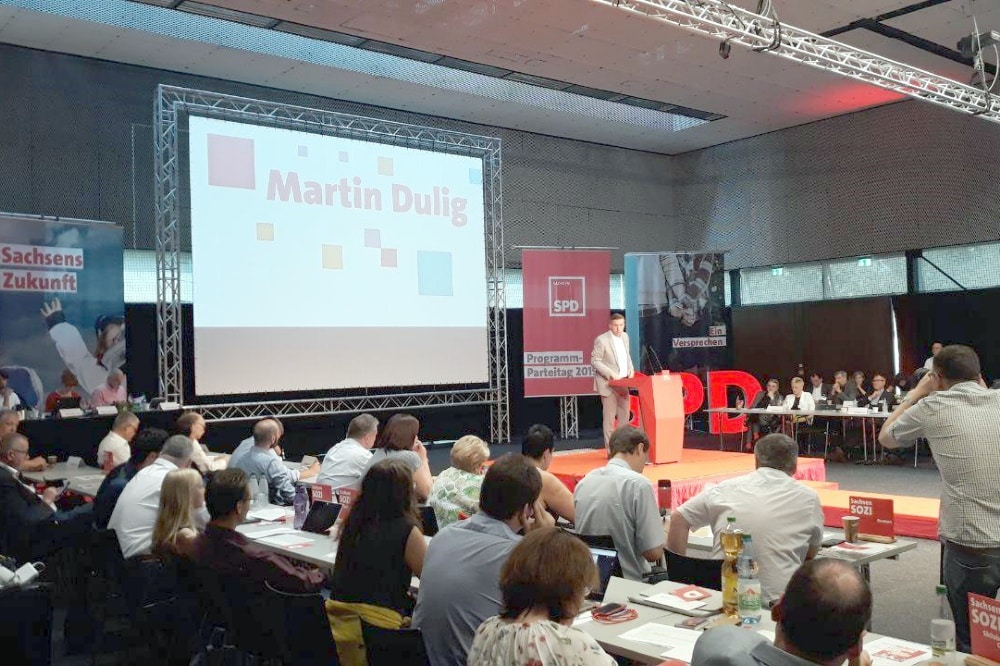 „Die SPD braucht eine neue Bedeutung. Eine alte, mit sich selbst beschäftigte Partei wird nicht gebraucht, um die neuen Fragen der Zeit zu beantworten. Was heute links heißt, wird nicht durch einen Parteitagsbeschluss definiert, sondern ob man an den Bedürfnissen der Menschen dran ist und auf der Höhe der Zeit die Gerechtigkeitsfragen beantwortet. Eine neue SPD wird dringend gebraucht, denn die Veränderungswucht durch die Megatrends Globalisierung, Digitalisierung und Klimawandel fordern Lösungen, die den Menschen gerecht werden. Die Gerechtigkeitsfragen dürfen doch nicht die Nationalisten beantworten!“, sagte Martin Dulig.