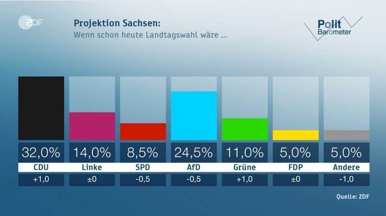 Laut Wahlumfragen wird die AfD ihr Ergebnis von 2014 klar übertreffen. Damals entfielen knapp zehn Prozent der Stimmen auf die rechtsradikale Partei; diesmal ist von etwa 25 Prozent auszugehen. Auch die Grünen dürfen mit einem deutlich besseren Ergebnis als vor fünf Jahren rechnen. Die FDP könnte nach fünf Jahren Pause in den Landtag zurückkehren. Auch die Freien Wähler haben Chancen – in Wahlumfragen lagen sie zuletzt bei drei bis vier Prozent.