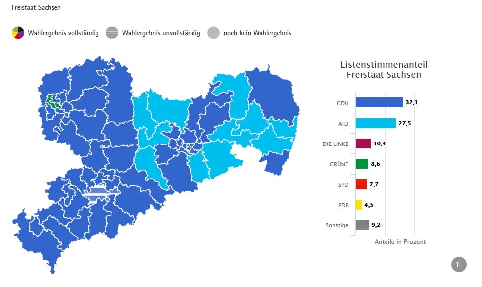 02 Uhr: Vorläufiges End-Ergebnis der Sachsenwahl