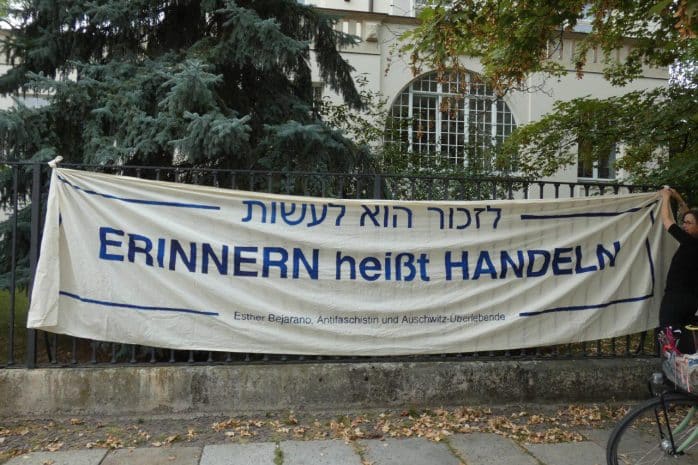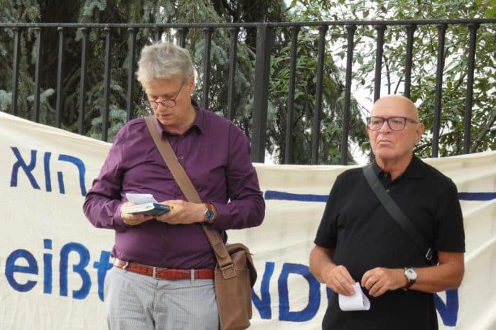 Bereits um 16:50 versammelte sich der Initiativkreis 9. November in der Wächterstraße zu einer kleinen Startdemonstration (siehe Foto).