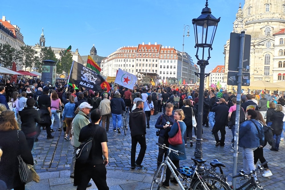 Der Gegenprotest am Neumarkt Dresden am 20. Oktober 2019. Foto: Privat