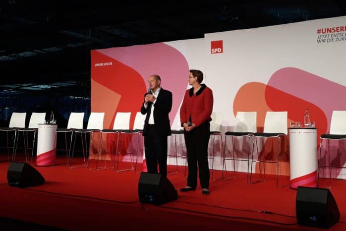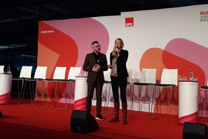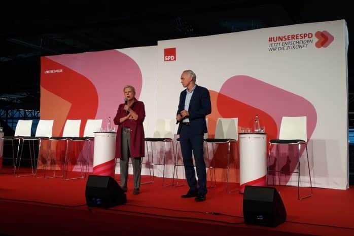 Scholz und Schwan hingegen gehören zu den Protagonist/-innen dieses Abends. Gemeinsam mit elf anderen Kandidat/-innen stellen sie sich auf der vorletzten Regionalkonferenz den Fragen der Mitglieder und Interessenten. Sie alle wollen bei der Mitgliederbefragung, die am Montag, den 14. Oktober, startet, die meisten Stimmen holen und sich Anfang Dezember auf dem Bundesparteitag der SPD zu den neuen Vorsitzenden wählen lassen.