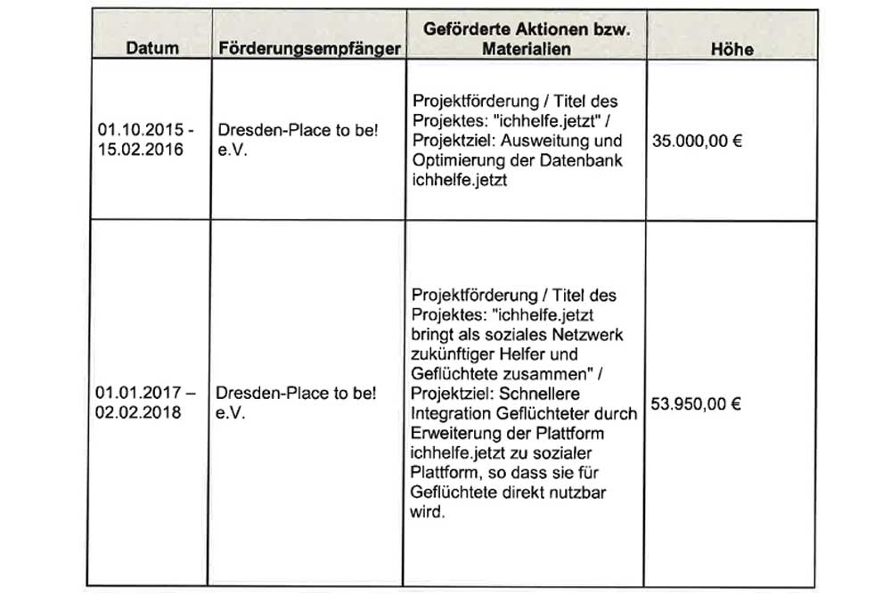 Der Verein Dresden – Place to be! hat in der Vergangenheit tatsächlich zwei Mal Projektförderung bekommen. Beide Förderungen sind hier nachzulesen.