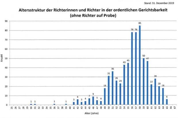 Und jetzt tut sich logischerweise ein riesiger Bedarf an frisch ausgebildeten Jusrist/-innen auf, die in den nächsten Jahren die ausscheidenden Richterinnen und Richter des Jahres 1990 ersetzen müssen.