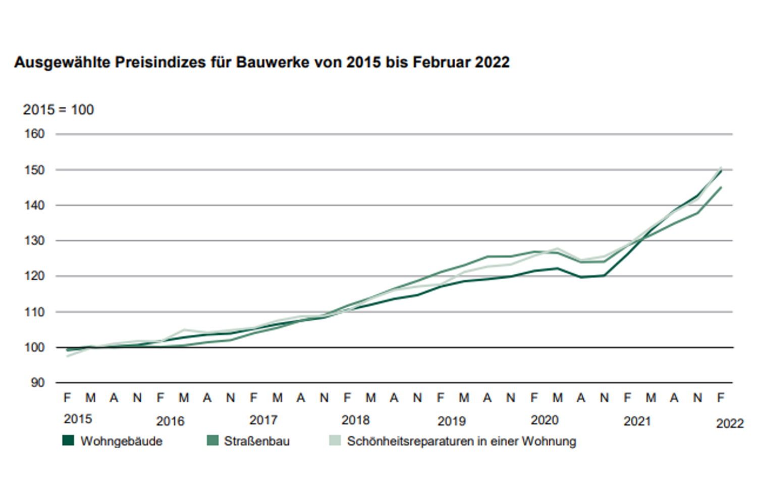 Meldung zur Entwicklung der Baupreise aus dem Statistischen Landesamt April 2022.