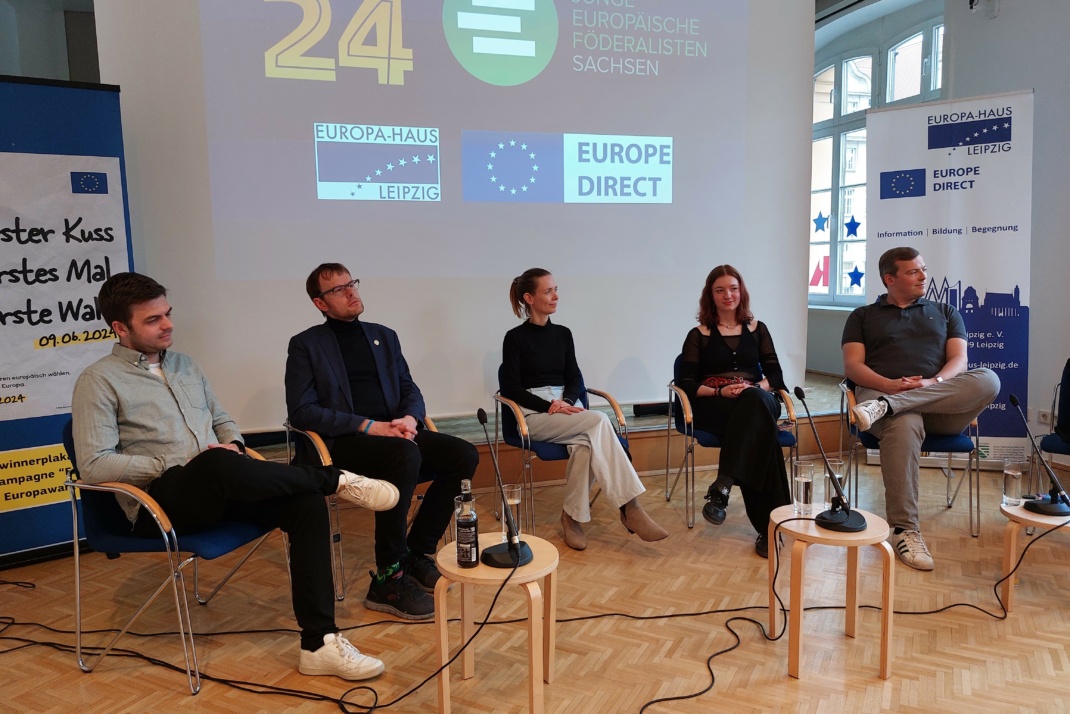 Um zu mehr Beteiligung und Gestaltungsfreude zu ermuntern, organisierte die Junge Europäische Föderalisten Sachsen (JEF-Sachsen) gemeinsam mit der Kampagne der Europäischen Kommission zur Europawahl (More in 24) am Dienstag, dem 7. Mai, eine Podiumsdiskussion bei Europahaus Leipzig am Markt.