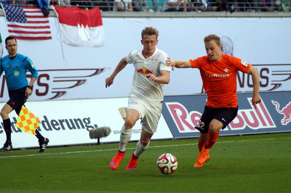 Können die Rasenballer doch noch einmal entscheidend ins Aufstiegsrennen einsteigen? Diese Frage schwebte aus Leipziger Sicht über dem 30. Spieltag. Um die Minimalchance zu wahren, brauchten die Gastgeber einen Sieg über den Tabellendritten aus Darmstadt. Chefcoach Achim Beierlorzer musste auf Emil Forsberg verzichten. Der Schwede ist nach seiner gelb-roten Karte gegen Kaiserslautern für ein Spiel gesperrt. Deshalb kehrte Diego Demme in die Startelf zurück.