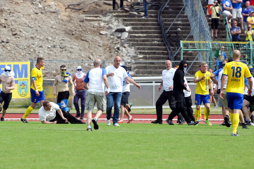 Der 1. FC Lokomotive greift nach den schweren Ausschreitungen während des Oberliga-Spiels gegen RW Erfurt II zu drakonischen Maßnahmen. Am heutigen Nachmittag möchte der Verein Fotos der Täter auf seiner Homepage veröffentlichen. "Wir setzen alles daran, die Randalierer zu ermitteln", sagte Präsidiumssprecher René Gruschka dem MDR. Die Gewalttäter sollen mit lebenslangen Stadionverboten bestraft werden.