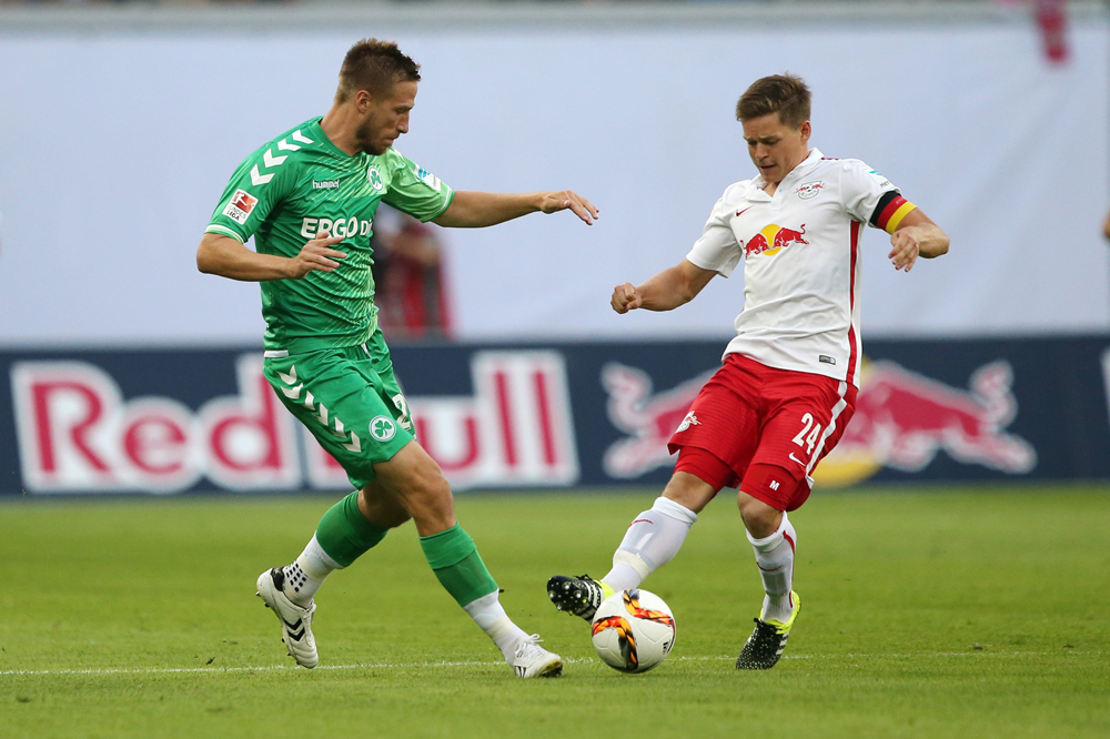 RB Leipzig ist im Top-Spiel der 2. Bundesliga gegen Greuther Fürth nicht über ein 2:2 (1:2) hinausgekommen. Die Rasenballer gerieten durch Abwehrfehler zweimal in Rückstand und taten sich streckenweise schwer, ihren offensiven Powerplay-Fußball zu zelebrieren. Davie Selke (13.) und Emil Forsberg (74.) stellten bei den Leipziger Toren ihre individuelle Klasse unter Beweis.