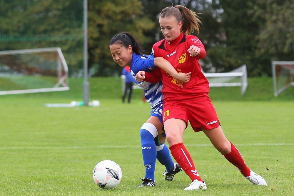 Im ersten Saison-Heimspiel mussten sich die Fußballerinnen des FFV Leipzig dem Staffelfavoriten aus Duisburg mit 0:4 (0:1) beugen. Bei ungemütlichem Herbstwetter konnten die Leipzigerinnen mit engagierter Abwehrarbeit die Partie eine Stunde lang offen halten. Nach vorn allerdings kam nicht viel zustande, nur eine einzige Großchance bot sich den Rot-Gelben. Zudem musste Neuzugang Madlen Frank mit einer Fußverletzung vom Platz getragen werden.