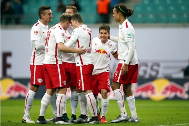 Die rot-weißen Gastgeber setzten von Beginn an auf Tempo und druckvolles Spiel. Bereits nach elf Sekunden schoss Sabitzer zum ersten Mal aufs gegnerische Tor – ihm fehlte es jedoch an Zielgenauigkeit und Kraft. Immer wieder brachte das Pressing der Rasenballer die FSV-Abwehr in Bedrängnis – manchmal patzten die Verteidiger aber auch ohne Not, so wie in der 6. Minute, als Poulsen eine verunglückte Ballannahme nutzte, um aus kurzer Distanz auf Gäste-Keeper Weis zu schießen. Dieser war jedoch zur Stelle. Der heute sehr auffällige RBL-Stürmer versuchte es kurz darauf per Schlenzer aus der Distanz (15.). Diesmal stand jedoch der rechte Pfosten seinem Torglück entgegen.