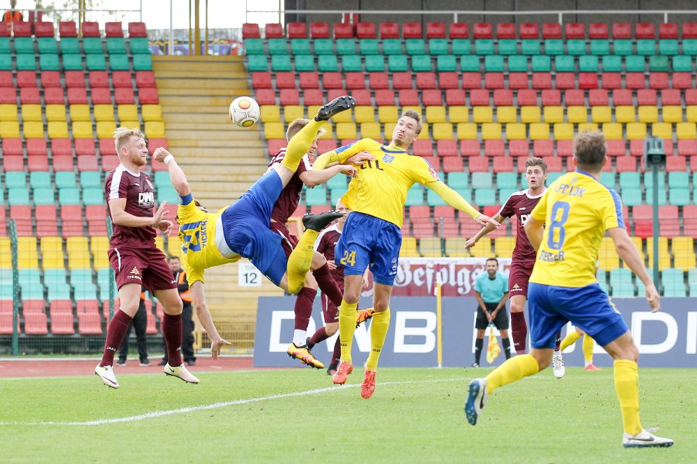 Entsprechend enttäuscht war Trainer Rydlewicz: „Wir müssen in dieser ersten Halbzeit ein Tor machen.“ Die Chancen dazu gab es: Schünemann traf Pfosten und Latte, Rockenbach verzog aus guter Position, Srbeny verlängerte einen Freistoß sehenswert mit der Innenseite knapp am Pfosten vorbei. „Da sind wir mit einem blauen Auge davongekommen“, wusste auch Scholz. Seinem Team fehlte aufgrund des offenbaren geistigen Boxenstopps die letzte Konsequenz, vor allem in den Offensivzweikämpfen.