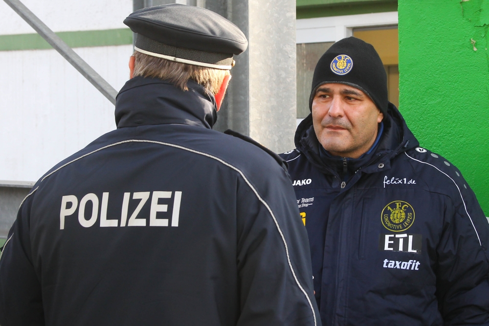Immerhin: Kurze Zeit waren sämtliche Journalisten gut geschützt, denn Leipzigs Polizeipräsident Bernd Merbitz schaute höchstselbst im Presseraum auf eine Bockwurst vorbei. Der 60-Jährige hätte nach dem Spiel die betriebliche Vollversammlung aller Polizisten in Leipzig abhalten können. Die Quote zwischen Fans und Polizisten stimmte. Alleine die sieben LVB-Busse, mit denen die Lok-Fans vom Plache-Stadion über die Chemnitzer Straße, Leinestraße, B2, Marschnerstraße und Hans-Driesch-Straße anreisten, wurden von über 30 Polizeiwagen begleitet.
