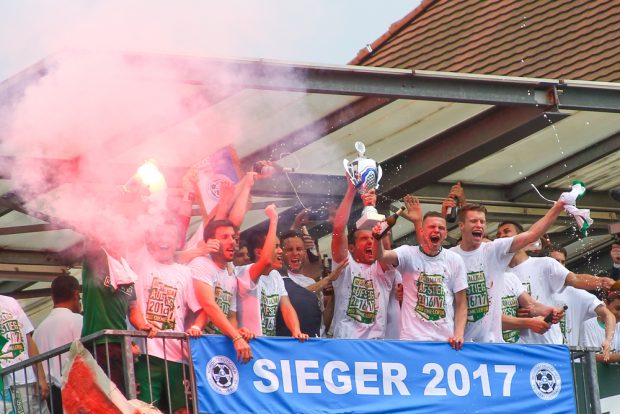 “Es ist einfach nur Wahnsinn. Ich kann es nicht beschreiben”, versuchte Tim Bunge seine Emotionen in Worte zu fassen. “Es ist unglaublich und absolut geil, es mit dieser Truppe geschafft zu haben. Wir haben das ganze Jahr lang hart dafür gearbeitet. Am Anfang war der Aufstieg zwar nicht unser Ziel, aber wir haben es am Ende trotzdem geschafft. Wir sind einfach überglücklich und werden jetzt feiern”. Gesagt, getan.