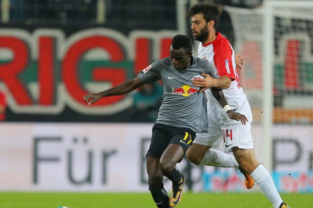 Trotz der vielen Umstellungen dauerte es nur etwas mehr als zwei Minuten bis zur ersten erfolgreichen Kombination und einem – harmlosen – Schuss von Werner aus kurzer Distanz. Die negativen Folgen der Rotation zeigten sich quasi im Gegenzug: Nach einem zunächst nicht gut ausgespielten Konter der Augsburger schaffte es die RBL-Defensive nicht, sich richtig zu sortieren und den Schuss von Gregoritsch durch die Beine von Mvogo zu verhindern – die Führung für Augsburg nach vier Minuten.
