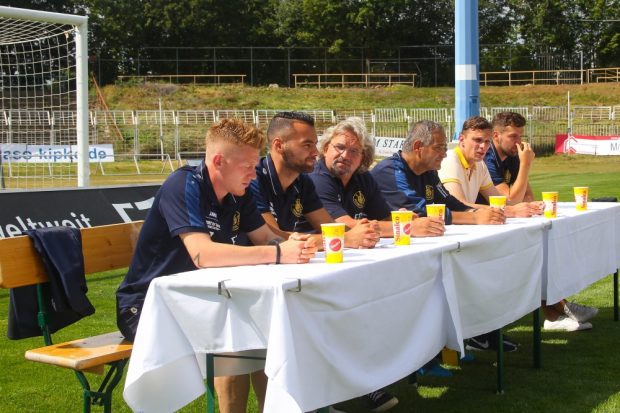 Das Lok-Podium: Maik Georgi, Djamal Ziane, Heiko Scholz (Trainer), René Gruschka (Team-Manager), Torsten Woitag (Geschäftsführer) und Christian Hanne. Foto: Jan Kaefer
