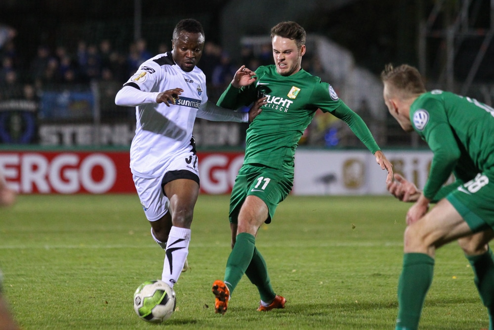 In der 2. Hauptrunde des DFB-Pokals gingen den Chemie-Kickern auf dem Rasen die Ideen allerdings recht schnell aus. Gleich in der 1. Minute hatten sie ihre einzige echte Torchance, als Kai Druschky auf der linken Seite enteilte, den Ball aber knapp am langen Pfosten vorbeischob.
