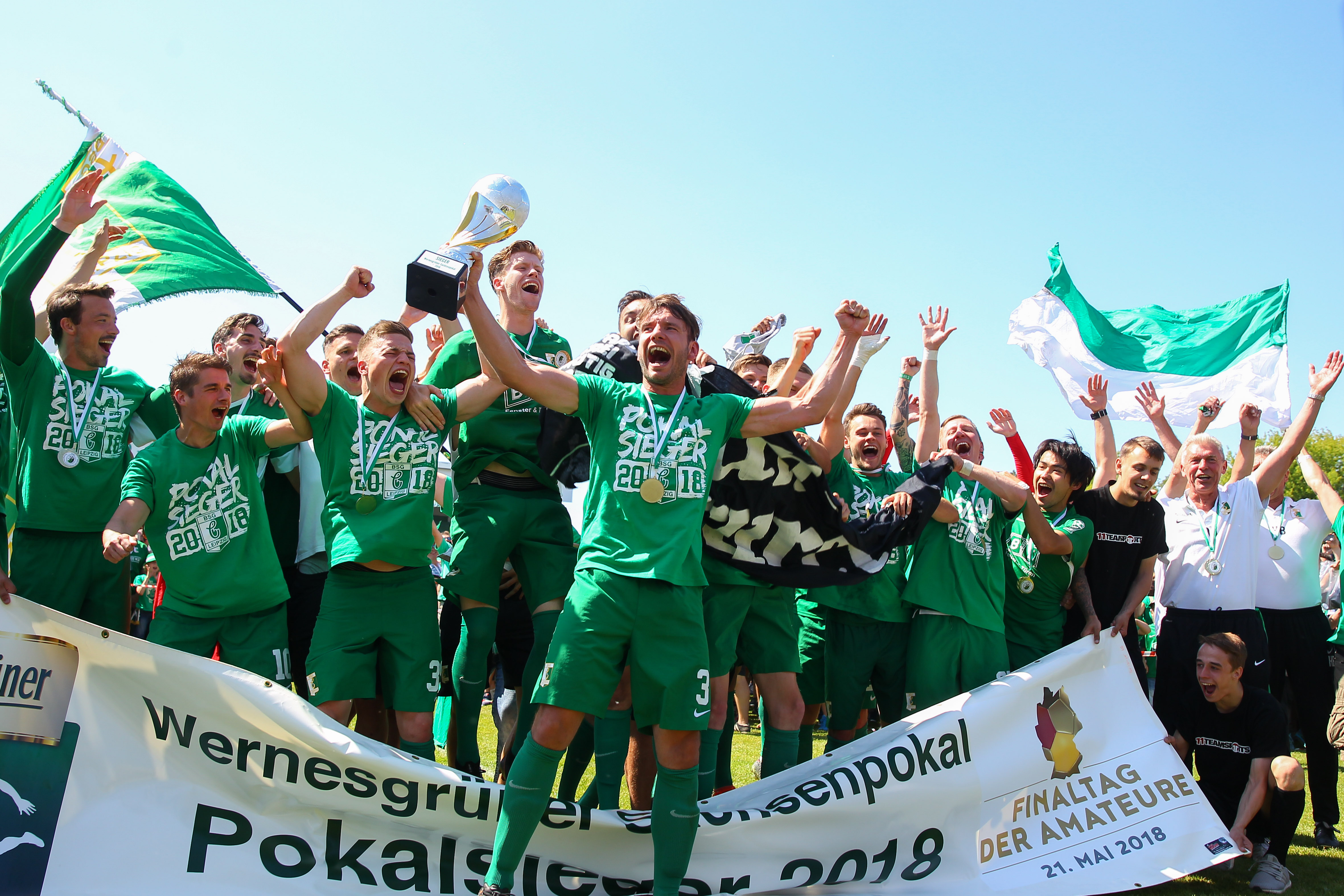 Riesen Jubel im Alfred-Kunze-Sportpark. Am 21. Mai 2018 besiegte die BSG Chemie Leipzig durch einen Treffer von Alexander Bury den FC Oberlausitz Neugersdorf mit 1:0 und holte damit den sächsischen Landespokal nach Leutzsch. Es war gleichzeitig das Ticket für die Teilnahme am DFB-Pokal-Wettbewerb, in welchem die Grün-Weißen sogar bis in die 2. Runde vorstoßen konnte.