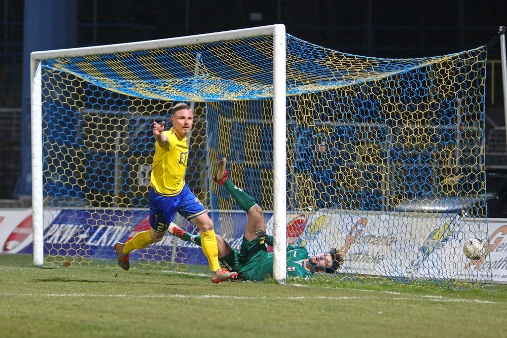 Robert Zickert bejubelt seinen Treffer zum zwischenzeitlichen 2:1 für Lok. Foto: Jan Kaefer