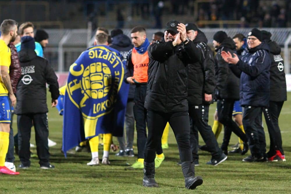 Lok-Trainer Wolfgang Wolf applaudiert zufrieden dem Leipziger Publikum. Foto: Jan Kaefer