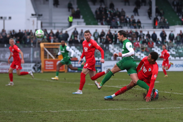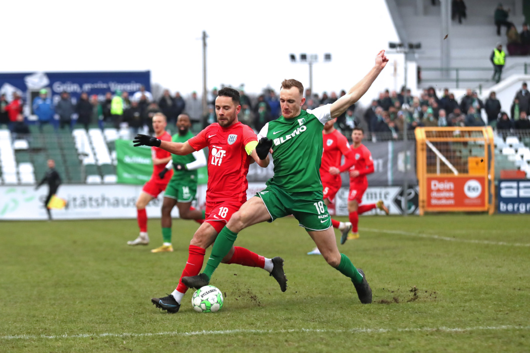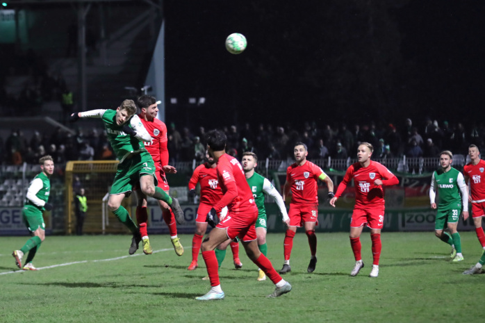 Wir haben auf dem tiefen Boden über drei, vier Stationen ganz schnell mal zwei Linien überspielt. Das sah klasse aus. Leider hast du dann in der zweiten Halbzeit die schweren Beine vom Erfurt-Spiel gemerkt. Das ist keine Ausrede. Wir haben regeneriert und die Jungs sind fit ins Spiel gegegangen. Aber irgendwann kommt die Situation, wo du versuchst, dir die Kraft ein wenig einzuteilen. Dann gab es in der zweiten Halbzeit eine Phase von zehn, 15 Minuten, wo wir das Zepter aus der Hand gegeben haben.
