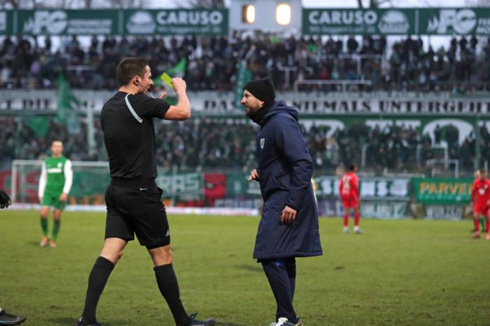 Im Laufe des Spiels kam immer wieder meine Emotionalität auf. Wir hatten auf der Bank das Gefühl, dass in 50:50-Situationen oft für Chemie gepfiffen wurde. Auch das klare Foulspiel an N’gatie am Strafraum pfeift er nicht. Daraufhin bin ich zum Schiedsrichter gegangen und habe mich natürlich aufgeregt. Die Gelbe Karte geht auch vollkommen in Ordnung.