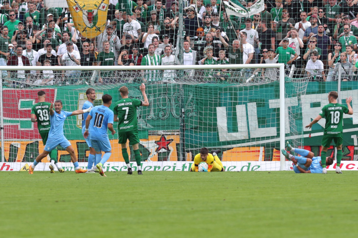 Der befreiende Jubel im AKS wäre drei Minuten später fast jäh verstummt. Viktoria-Kicker Metehan Yildirim tanzte im Strafraum gleich zwei, drei Chemiker elegant aus und zog zentral aus 15 Metern ab. Doch im Kasten war der bis dahin kaum beschäftigte Benjamin Bellot hellwach und schickt den Ball mit den Fingerspitzen über die Querlatte. So hatte die knappe Leipziger Führung auch zur Halbzeitpause noch Bestand.