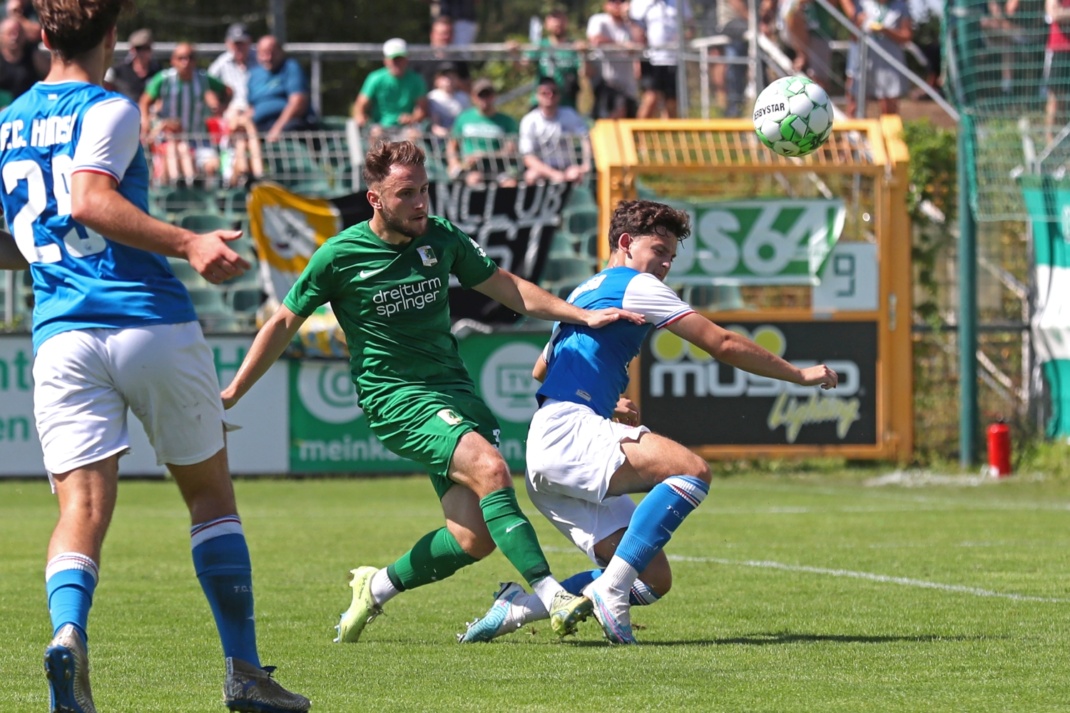 Doch schon kurz nach Spielbeginn drohte dieses Vorhaben erschüttert zu werden. Harant spielt in der 7. Minute an der Mittellinie einen haarsträubenden Rückpass, den sich Bachmann schnappte und dem scheinbar ebenso überraschten Horschig enteilte. Ganz alleine vor dem Tor, scheitert der Rostocker aber mit seinem Schuss am linken Fuß von Chemie-Keeper Bellot. Kollektives Aufatmen im AKS.