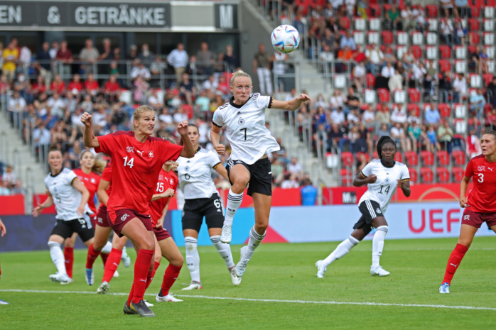 Lea Schüller (Deutschland) in einem Länderspiel gegen die Schweiz in Aktion. Foto: Jan Kaefer (Archiv)
